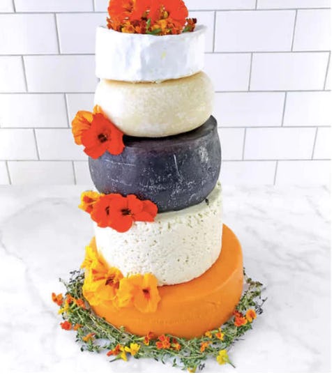 The geniuses at Costco, where I can't help but point out I have always had amazing luck finding really excellent cheese on the regular, have done it again in the party planning department. The wholesale giant is now offering something called a Cheese Lover Celebration Cake; essentially a 5-tier cake made of premium wheels of delicious cheese. The cake serves 105 - 150 people which makes it the perfect size for a wedding, a baby shower, or movie night at my house with five of my friends.