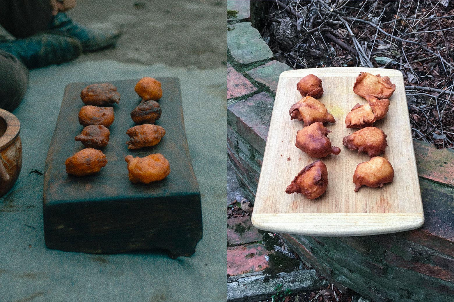 The first few oily cakes were good, but not life-changing, even to a frontiersman. They were flattened blobs rather than spheres, and they weren’t as puffy as I would have liked. Then I realized I forgot the eggs, so the next batch was really great! Deep-fried puffy spheres with crunchy little tails, steaming and delicious drizzled with (as in the movie) a little honey and a little cinnamon. (Where did people in 1820s Oregon get cinnamon?! Who knows.) My friend Jonathan, a poet and teacher, picked one up, and I said: “It’s 1820! You’re a rugged, bearded dude trapped among a bunch of other dudes! No one appreciates art, they just want furs and silver! You haven’t eaten anything that isn’t hardtack or squirrel in like five years!” Would it blow his mind? Jonathan wiped his mouth and said, “These are good!” He now owes me five pieces of silver.