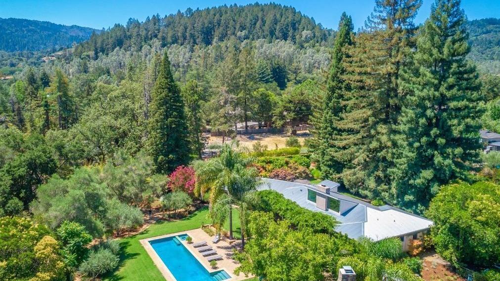 From the listing: "This Mid Century inspired luxury estate is nestled on one of the most coveted streets in St. Helena within the city limits, yet far enough away from the hustle bustle of town. This thoughtfully designed estate includes all the amenities one would expect from a true luxury property. Sited on approximately 2.6 acres it includes approximately one-half acre of highly rated Cabernet vineyard, massive redwoods and seasonal creek."